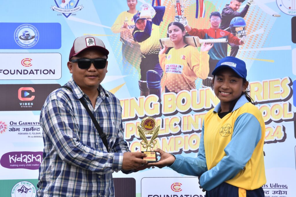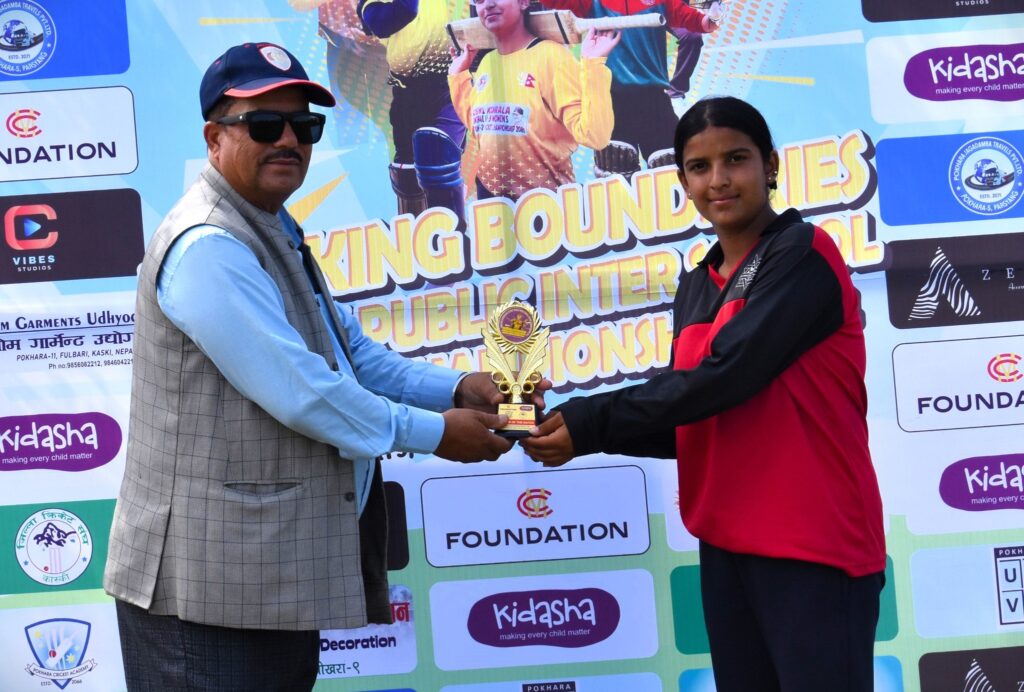 पोखरा क्रिकेट एकेडेमीको आयोजनामा जारी कास्की जिल्ला स्तरीय तेस्रो ब्रेकिङ बाउन्ड्रीज अन्तर मावि छात्र छात्रा टी–ट्वान्टी क्रिकेट प्रतियोगिता अन्तर्गत छात्रातर्फ सिद्ध मावि र अमरसिंह मावि फाइनलमा प्रवेश गरेका छन् । पोखरा रंगशालामा मंगलबार भएको खेलमा सिद्धले त्रिभुवन शान्तिलाई तथा अमरसिंहले बाराही माविलाई पराजित गर्दै अन्तिम दुईमा स्थान सुरक्षित बनाएका हुन् ।