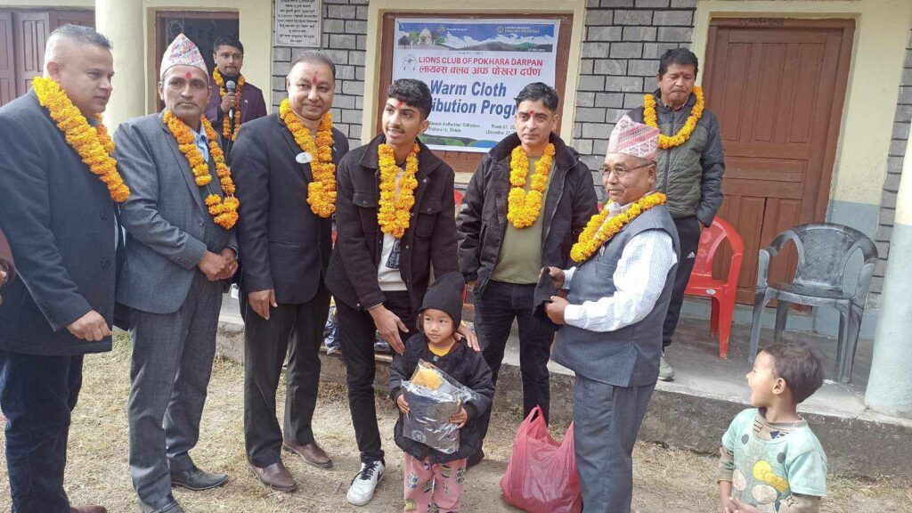 लायन्स क्लब अफ पोखरा दर्पणले पोखरा १६ ओख्लेस्थित श्री ज्योती भवन आधारभुत बिद्यालयका २३ जना विद्यार्थीहरुलाई न्यानो कपडा ट्रयाक सुट र टी–सर्ट बितरण गरेको छ । आवस्यकतामा रहेकाहरुलाई सहयोग पुर्याउने उदेश्य सहित आयोजित कार्यक्रमबाट वास्तबिक रुपमा उचित बर्ग लाभान्वित भएका छन । संयोजक क्लबका द्वित्तिय उपाध्यक्ष लायन पदमलाल अधिकारीले शुभकामना मन्तव्य सहित कार्यक्रम बारे प्रकास पार्नुभएको थियो भने क्लबका सदस्यहरु तथा खुर्कोट, पोखरा १६ निवासी पवन अधिकारीको सहयोगमा उक्त न्यानो कपडा बितरण कार्यक्रम आयोजना गरिएको थियो ।