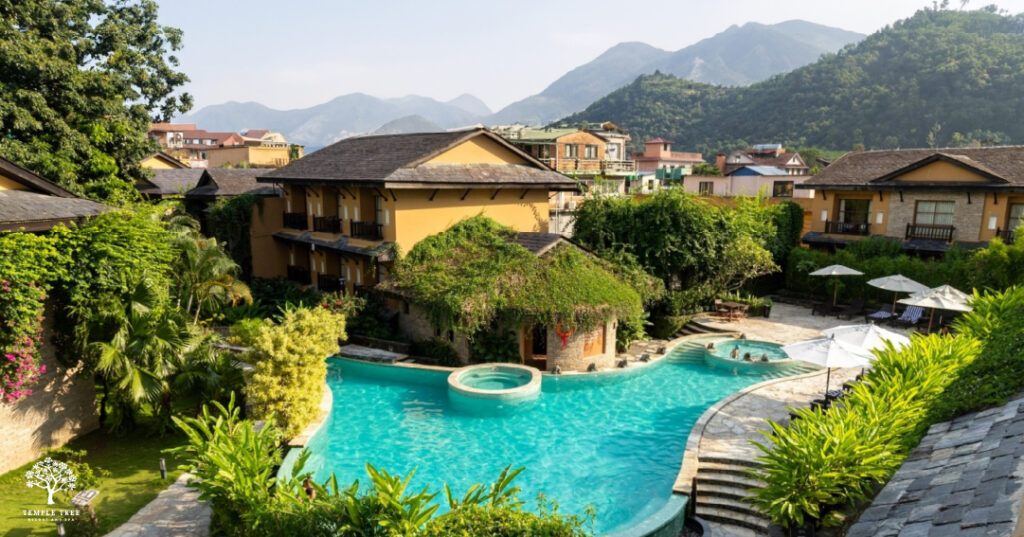 फेवाताल नजिकैको बुटिक रिसोर्टमा डिलक्स, सुपर डिलक्स, जुनियर स्विट र एक्जुकेटिभ स्विट विशेषताका ६८ वटा कोठाहरु रहेका छन् । रिसोर्टमा स्विमिङ पुल, ज्याकोजी, जिम, फिटनेस सेण्टर लगायतका सुविधाहरु छन् । परम्परागत गाउँले शैली झल्कने रिसोर्टका प्रत्यक कोठामा छुट्टाछुट्टै बल्कोनी रहेका छन् । बजारको विच भागमा रहेर पनि रिसोर्ट भित्रको शान्त वातावरण, सुन्दर बगैचा पाहुनाहरुको रोजाइमा पर्ने गरेको छ ।