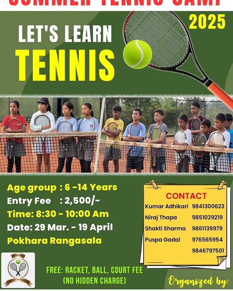 कास्की जिल्ला टेनिस संघले विद्यार्थीहरुलाई लक्षित गर्दै ‘समर टेनिस क्याम्प’ कार्यक्रम सुरु गर्ने भएको छ ।