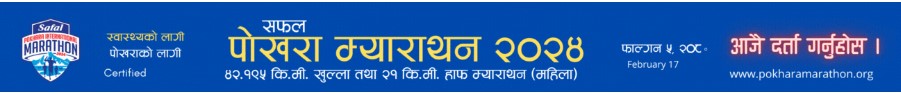 पोखरा अन्र्तराष्ट्रिय म्याराथन प्रतियोगिता शनिबार पोखरामा आयोजना हुँदैछ । भूतपूर्व खेलाडी मञ्च नेपालको आयोजनामा प्रत्येक वर्ष फागुनको पहिलो शनिबार हुने पोखरा अन्र्तराष्ट्रिय म्याराथन प्रतियोगिताको १८ औं संस्करण यस वर्ष शनिबार हुन लागेको हो । प्रतियोगिताको गण्डकी प्रदेशका मुख्यमन्त्री सुरेन्द्रराज पाण्डेले उद्घाटन गर्ने कार्यक्रम तय भएको मञ्चका अध्यक्ष हरिप्रसाद पराजुलीले जानकारी दिए ।